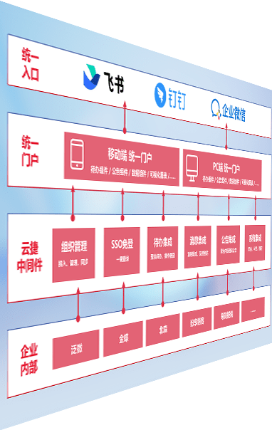 对协作平台提供支持服务,,支持企业应用与协作平台对接,,,包含组织同步、、消息集成、、、待办集成等。。支持目前主流的协作平台:钉钉、、、企微和飞书。。